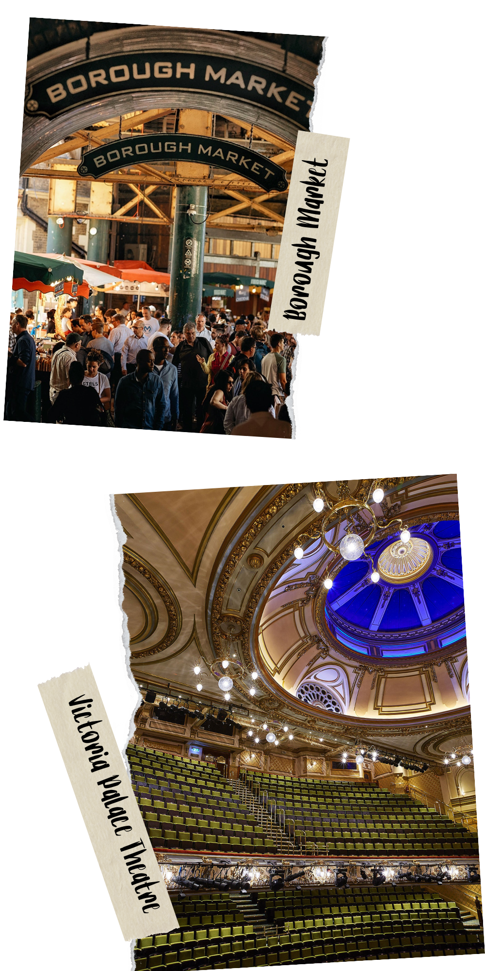 Theater District – Surrounded by Piccadilly Circus, Trafalgar Square, Covent Garden, and Tottenham Court Road, this area in London’s West End is a MUST-experience. Walk around, shop, eat, and catch a show in this lively district. This year's MUST-watch show is Hamiton, the musical tells the story of American Founding Father Alexander Hamilton, shown at the Victoria Palace Theatre.